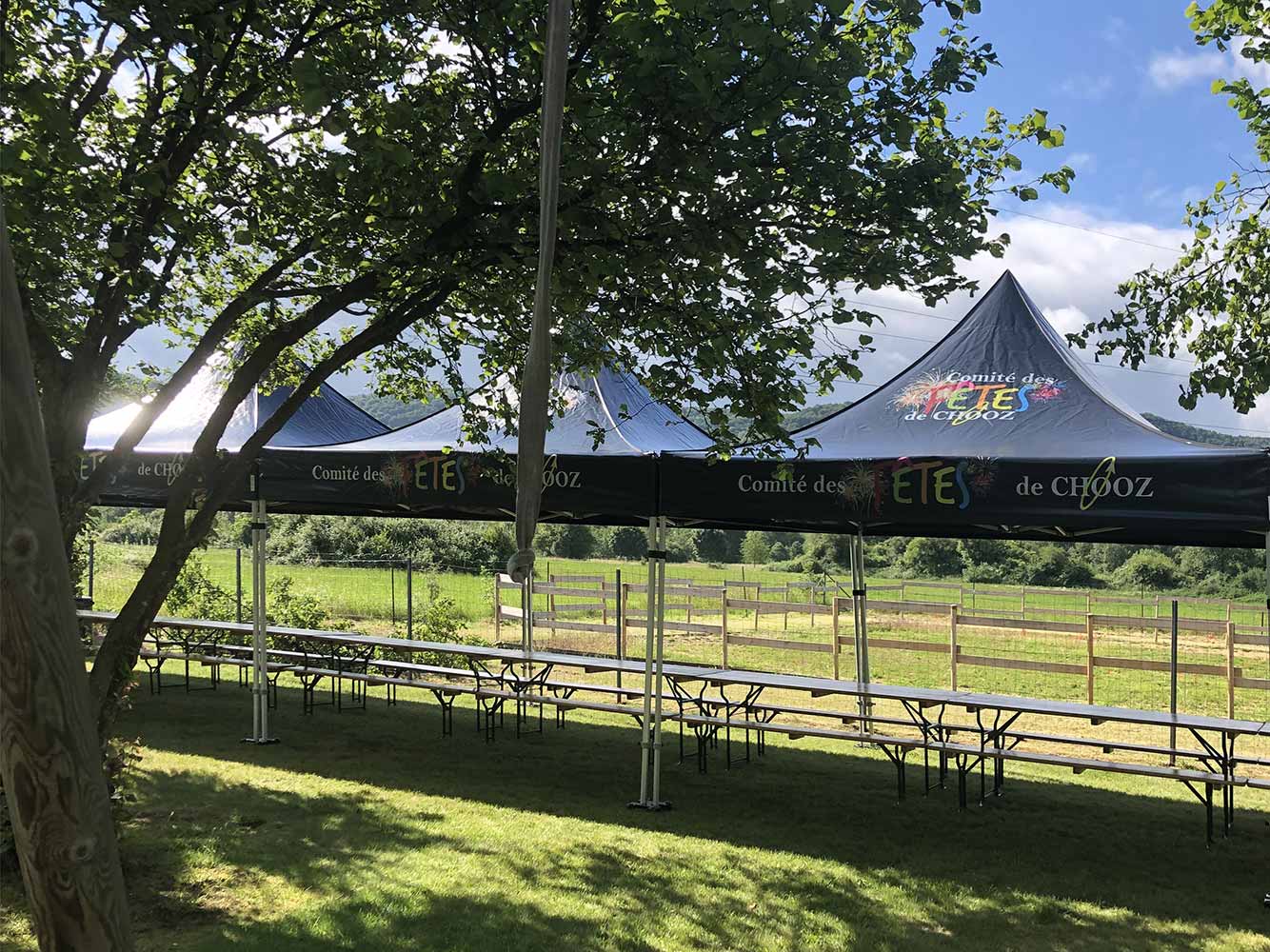 Les gammes V2 et V5 sont des produits performants que nous préconisons régulièrement aux collectivités. La V2 est disponible en 5m x 5m : un grand chapiteau pliant pour accueillir votre public en tout confort.